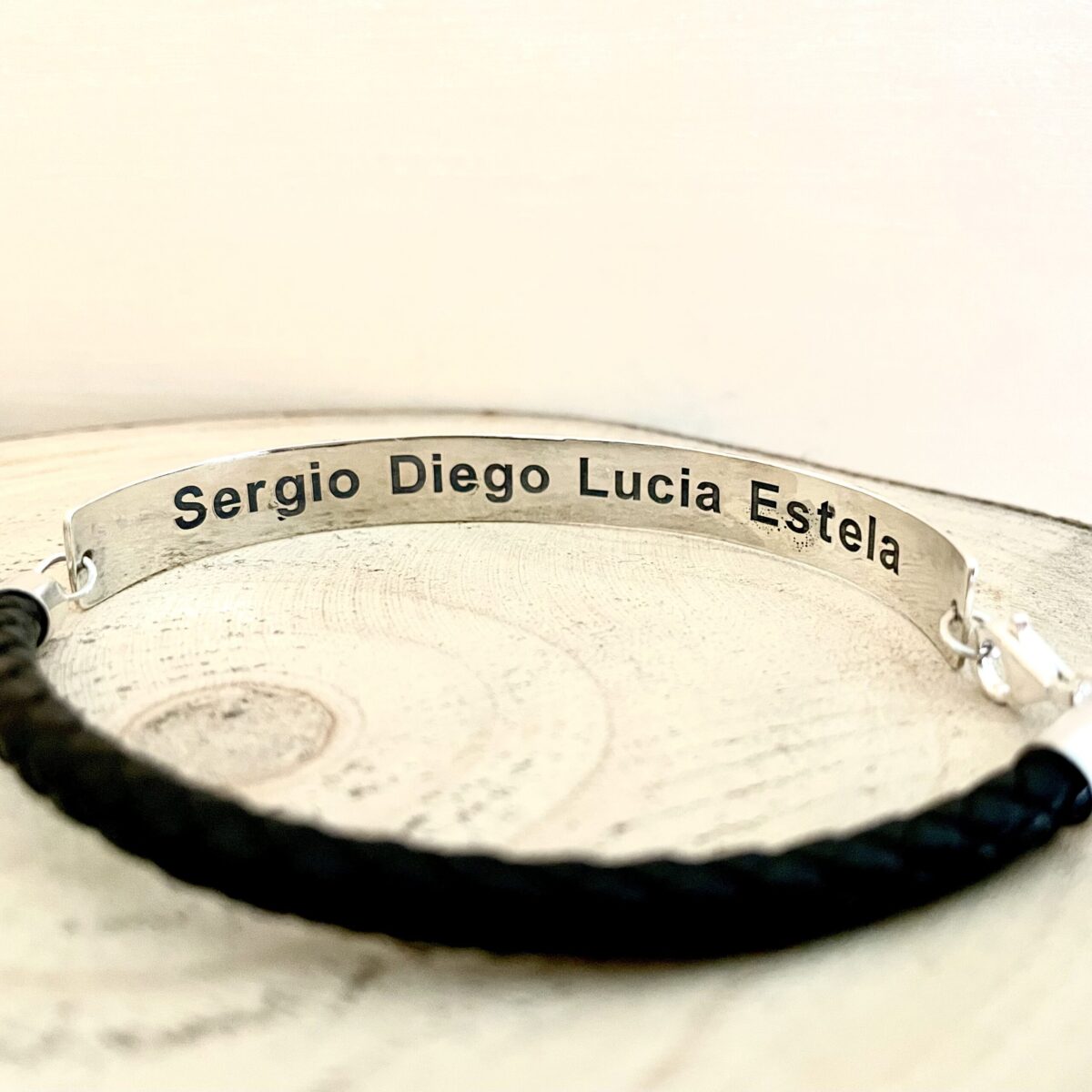 PULSERA PERSONALIZADA PLATA Y CUERO